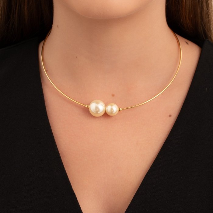 ARO FIO 1,5 MM COM 12 CM DIAMETRO COM PEROLAS DE 10 E 16 MM COM FECHO E EXTENSORQTDE PCT: 5 PCS