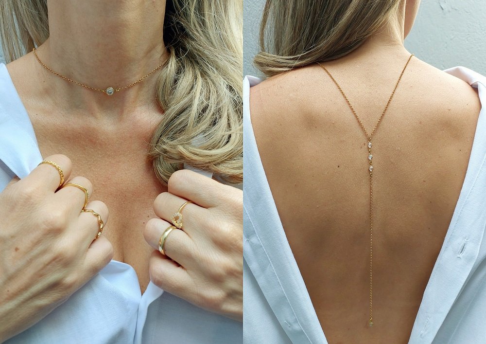 BACK NECKLACE ELO PORT 65 CM PG PONTO LUZ 6 MM + CORRENTE COSTAS 19 CM 3 PONTO LUZ 4 MM FINALIZANDO COM PONTO LUZ 4 MMQTDE PCT: 5 PCS