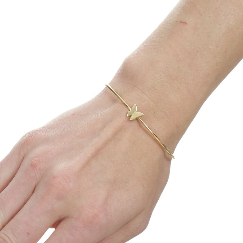 BRACELETE 6 CM DIAM FIO 1,5 MM BORBOLETA DOBRADA - GEOMETRICA 9 MM BX BOLA 3 MM NAS PONTASQTDE PCT: 5 PCS