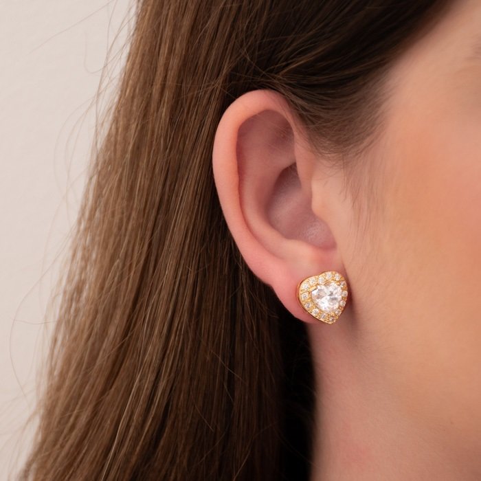 BRINCO CORACAO 8X8 COLOR (CRISTAL - RUBI - TURMALINA - ESMERALDA) CONTORNO ZIRC IMP - CONSULTAR CORESQTDE PCT: 5 PRS