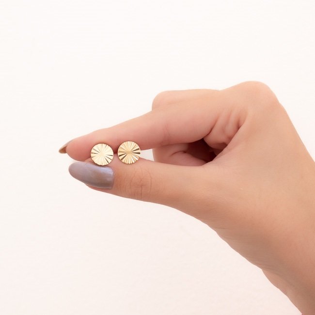 BRINCO FIXO MOEDINHA RISCADA 1 CM ESTAMPQTDE PCT: 5 PRS