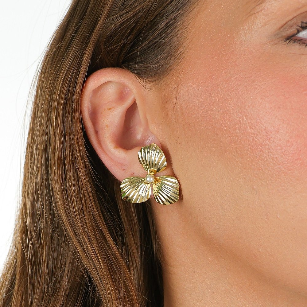 BRINCO FLOR 2,5 COM PEROLA 4 MM NO MEIO ESTAMPQTDE PCT: 5 PRS