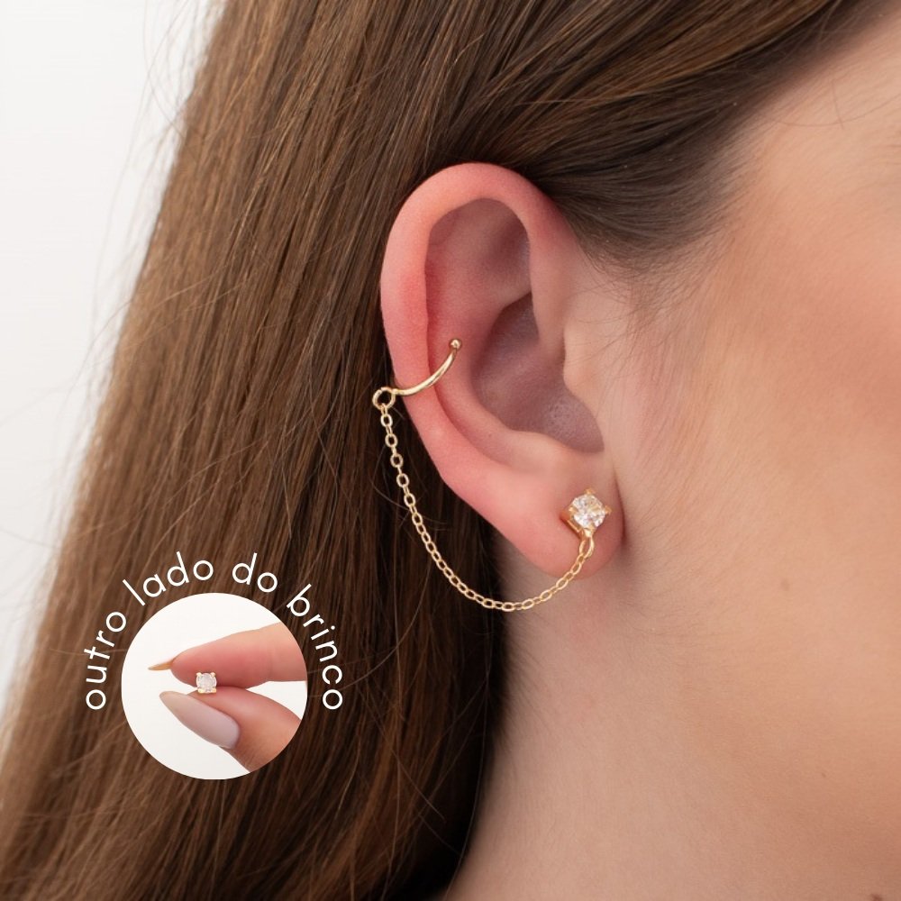 BRINCO UM LADO PONTO LUZ ZIRC 5 MM + OUTRO LADO BRINCO FAKE COM PONTO LUZ ESTAMPQTDE PCT: 5 PRS