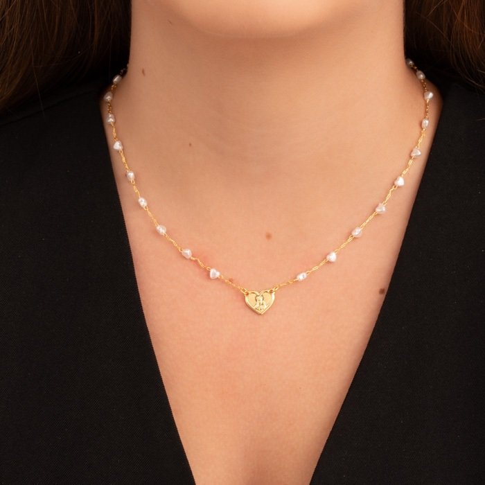 CHOKER 35 CM CORRENTE PEROLA CORACAO + NOSSA SENHORA DO CARMO COM 10 CM EXT - ESTAMPQTDE PCT: 5 PCS