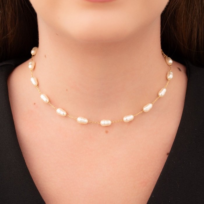 CHOKER 35 CM PEROLA BARROCA + 10 CM EXTENSORQTDE PCT: 5 PÇS
