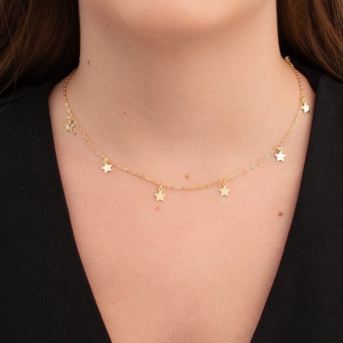 CHOKER CADEADO 7 ESTRELAS 35 CM + 10 CM EXTQTDE PCT: 5 PÇS