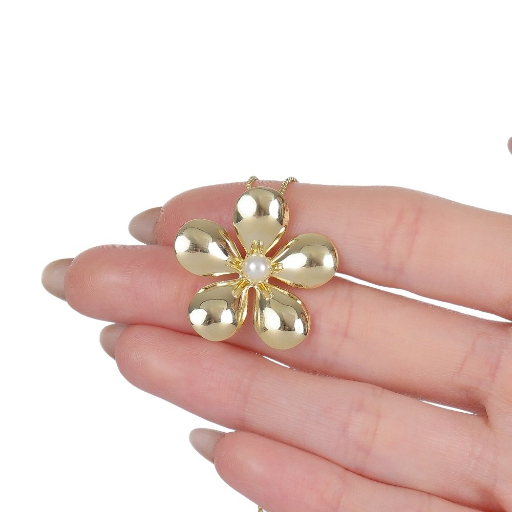 PINGENTE COM PASSANTE FLOR 3 CM COM PEROLA 5 MM MEIO ESTAMPQTDE PCT: 5 PÇS
