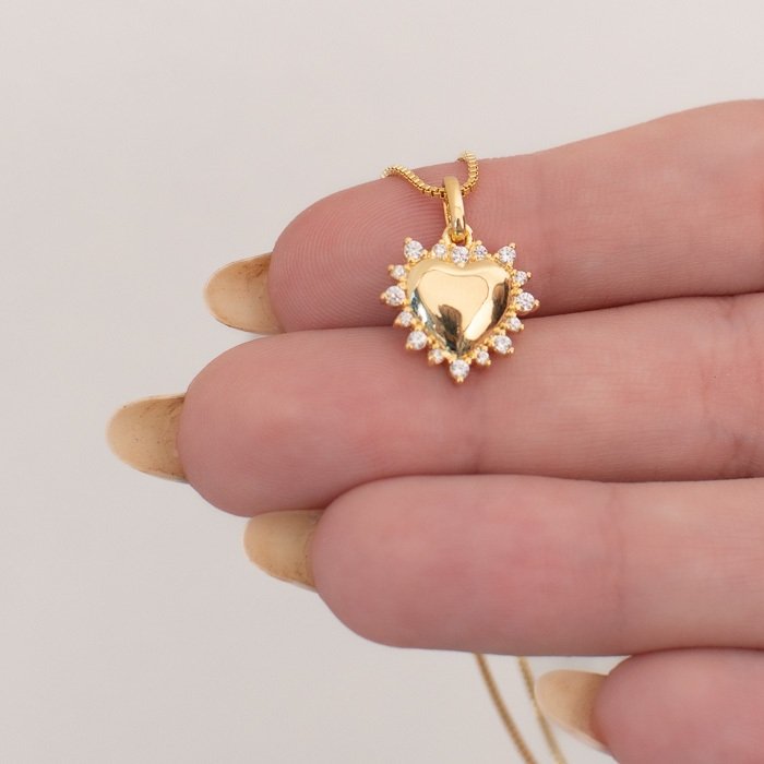 PINGENTE CORAÇÃO CRAVEJADO COM ZIRCÔNIAS NAS LATERAIS 1 CMQTDE PCT: 5 PÇS