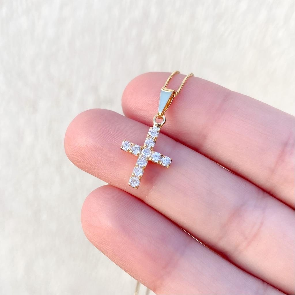PINGENTE CRUZ ZIRC EM MT 1,3 CM QTDE PCT: 5 PCS