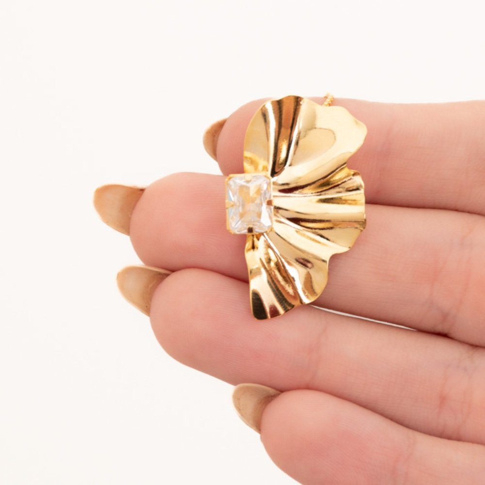 PINGENTE MEIA FOLHA ORGANICA AMASSADA PASSANTE DE 3,3 CM COM PEDRA DE ESTAMPQTDE PCT: 5 PÇS