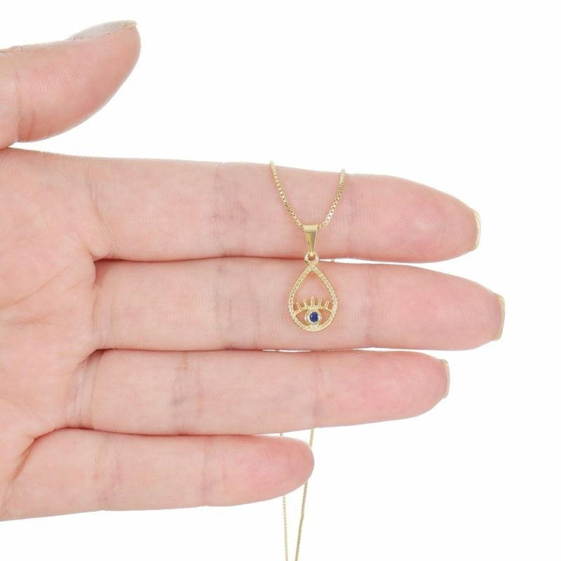 PINGENTE OLHO GREGO GOTA 1,4 CM COM ZIRCONIA AZUL OU CRISTAL 2 MM BXQTDE PCT: 5 PÇS