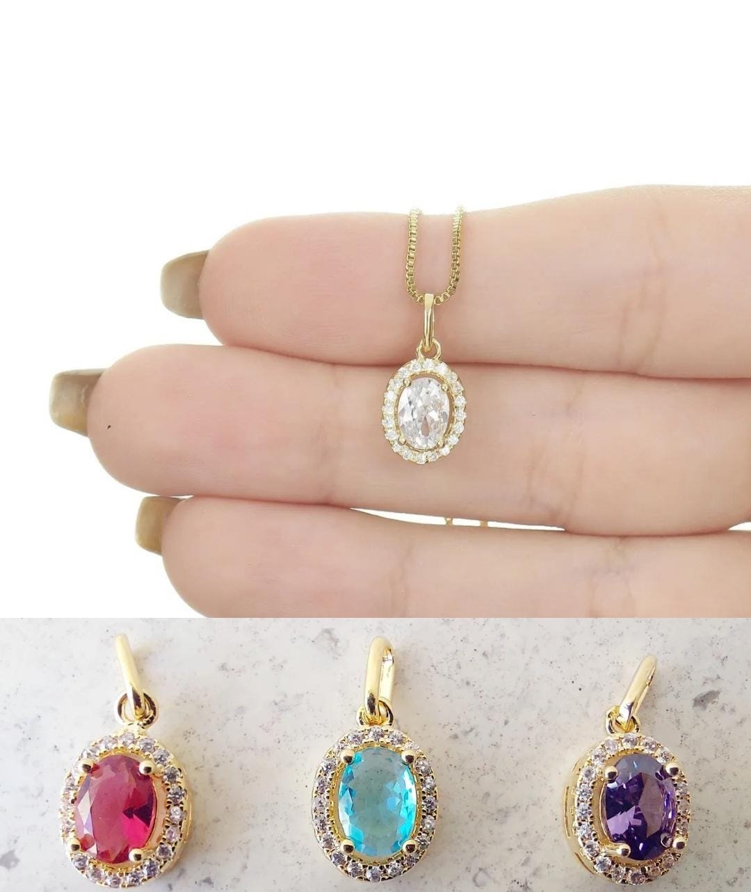 PINGENTE OVAL 6X4 COLOR ZIRCONIA IMP - CONSULTAR CORESQTDE PCT: 5 PÇS