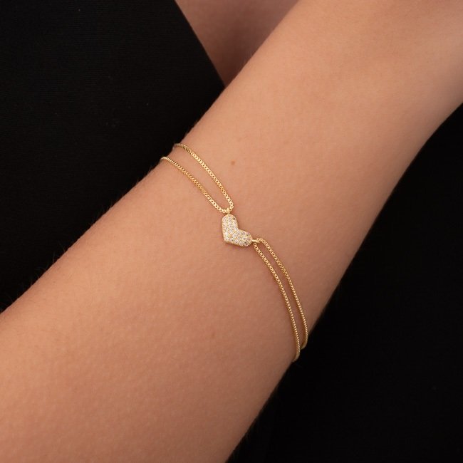 PULSEIRA VENEZ DUPLA COM CORACAO ZIRC IMP 17 CM 7 CM EXTQTDE PCT: 5 PÇS